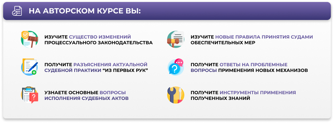 Вебинар Изменения процессуального законодательства и новые правила принятия судами обеспечительных мер 0 Скачать программу Принять участие Принять участие 0