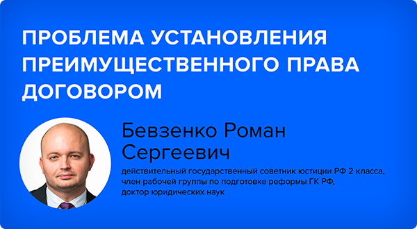 Лектор: Бевзенко Роман Сергеевич, действительный государственный советник юстиции РФ 2 класса, член рабочей группы по подготовке реформы ГК РФ, доктор юридических наук.